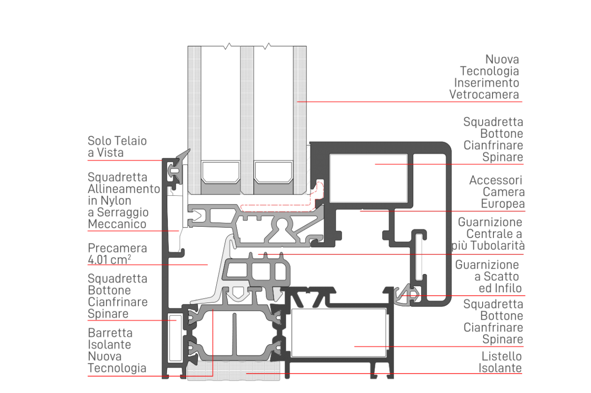 Profilati per finestre che consentono la costruzione di infissi ad una, due o più ante a battente, nella versione a giunto aperto con anta nascosta.