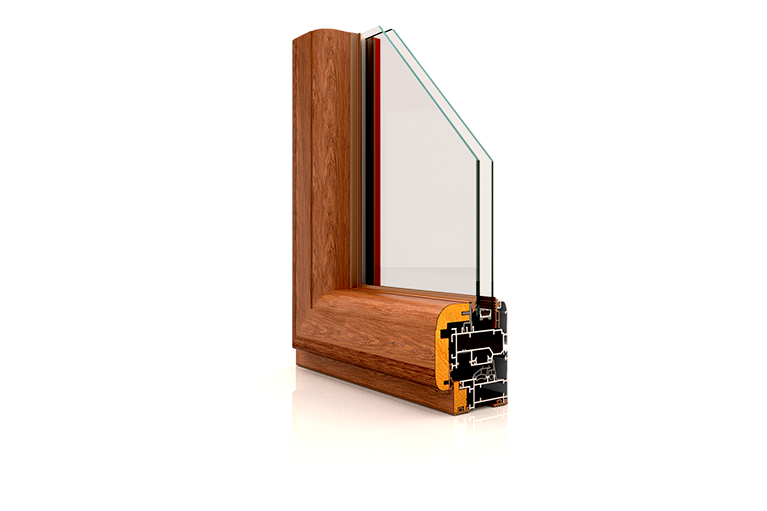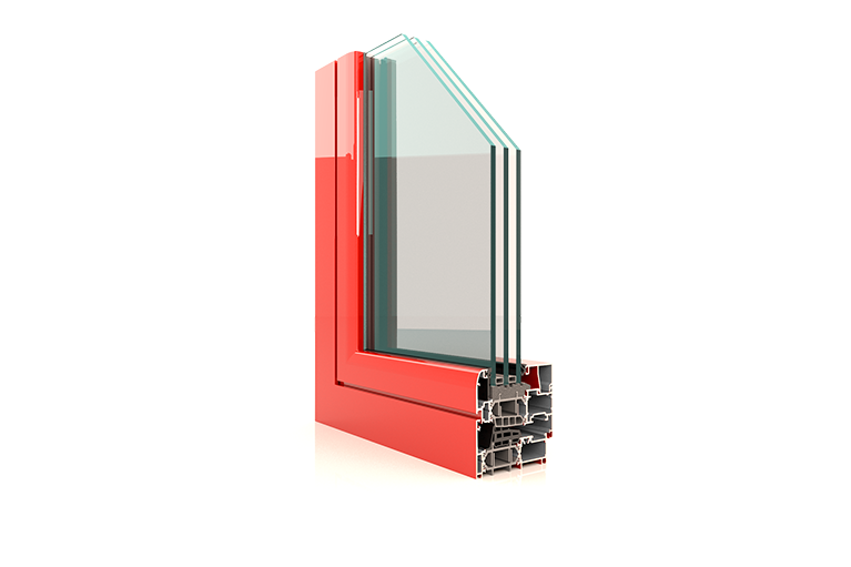 Profilati per finestre che consentono la costruzione di infissi ad una, due o più ante a battente, nella versione a giunto aperto o con doppia guarnizione di battuta complanari all’esterno e a sormonto all’interno.